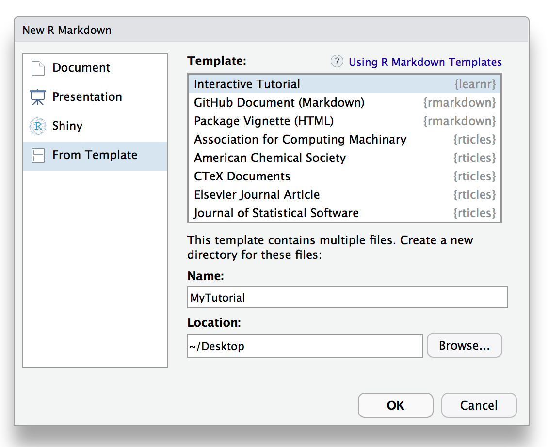 The learnr package is designed to be used with a wide variety of R Markdown formats. A tutorial is simply a directory containing an R Markdown document which: